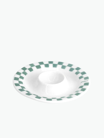 Elevate your breakfast ritual with the Café Kitsuné Egg Cup. Hand-painted in France with a charming green checkered motif, this piece adds a playful yet refined touch to your morning table. Crafted in fine porcelain, it’s part of the exclusive Café Kitsuné collection, an emblem of French craftsmanship and contemporary Parisian style. Perfect for holding your soft-boiled eggs with elegance, it’s dishwasher-safe for easy everyday use.